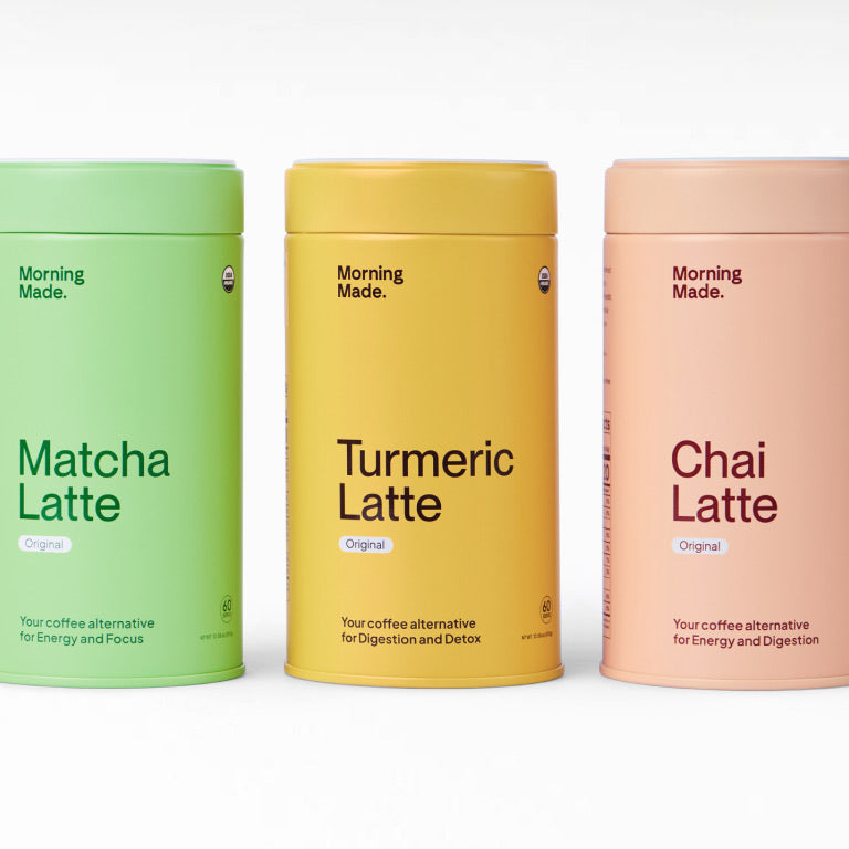Morning Made Matcha and Morning Made Chai both contain 30mg of caffeine per serve. Which is a small amount, like, less than a third of a traditional cup of coffee. Morning Made Turmeric is caffeine free, if you wanna opt out of this stimulant entirely.